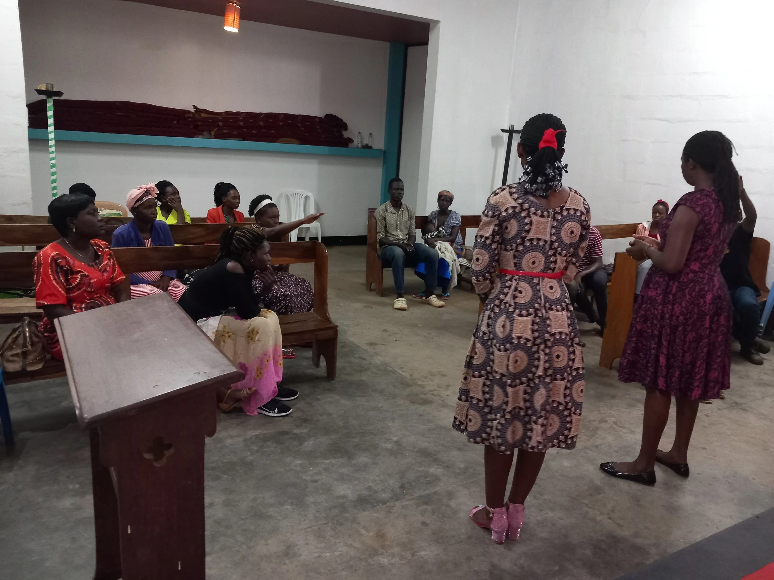 Members of a deaf community receiving training (right)
